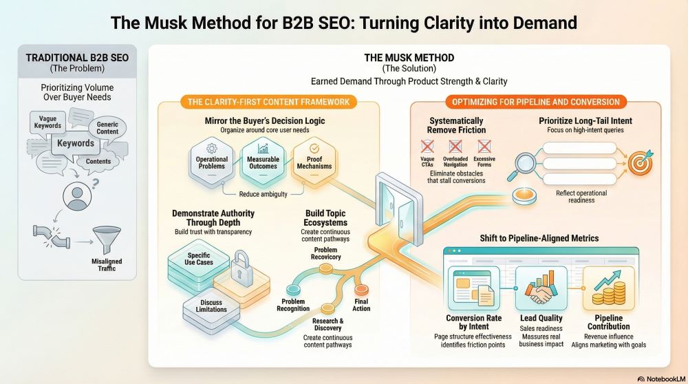 A clarity-first SEO model organizes content around decision logic: